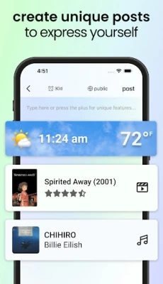 • Unique posts - There is no limit to what you can post with unique features such as photo layouts, songs, weather, movie, tv, spoilers, and more!
