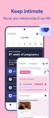Connect your app with your partner, share information about your cycle, fertility and mood. Play with features for couples, measure your closeness and boost your intimate life!