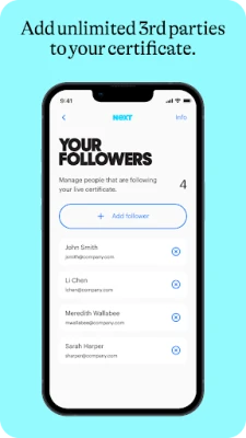 Your certs need to keep up with your business as it changes and grows. Got a new client or vendor? Add them to your cert in seconds straight from the app.