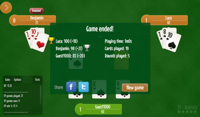 ✔✔✔ Thirty one - 31 card game features: